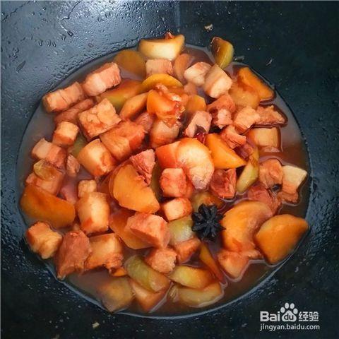 在锅中加入适量的油,将猪肉块放入锅中翻炒至表面微黄。这一步非常重要,可以让肉质更加鲜嫩。